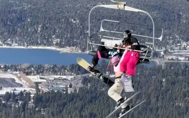 Uma esquiadora de 21 anos ficou pendurada pelos braços em um teleférico em movimento na tarde de terça-feira (25), em Big Bear, na Califórnia, nos Estados Unidos. O momento foi filmado por outro praticante e divulgado nas redes sociais.