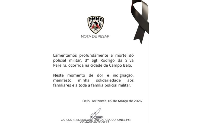 A Polícia Militar de Minas Gerais divulgou nas redes sociais uma nota de pesar lamentando a morte do sargento e manifestando solidariedade aos familiares e colegas de farda.