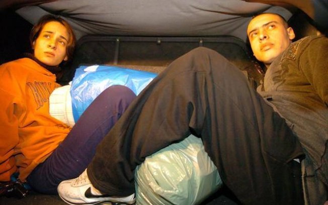 Da esquerda para direita: Cristian, Daniel e Suzane von Richthofen após serem presos, em 2002Arquivo