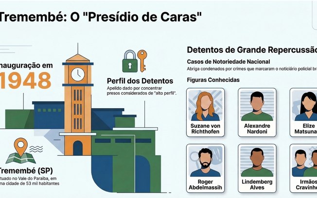 A pequena cidade do Vale do Paraíba, com pouco mais de 53 mil habitantes, abriga o complexo prisional que se tornou um dos mais conhecidos do Brasil justamente por concentrar presos considerados de “alto perfil”. Entre os muros da penitenciária, construída em 1948, já passaram alguns dos nomes mais marcantes do noticiário policial brasileiro, como Suzane von Richthofen, Alexandre Nardoni, Elize Matsunaga, Roger Abdelmassih, Lindemberg Alves e os irmãos Cristian Cravinhos e Daniel Cravinhos.