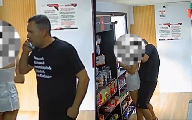 É possível ver quando Prado entra no estabelecimento comercial praticamente ao mesmo tempo que a vítima. Ele aparenta falar ao telefone e permanece parado por alguns instantes enquanto a jovem pega um refrigerante.