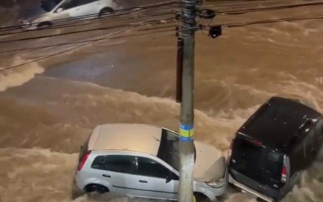 Em Ribeirão das Neves, um motociclista foi arrastado pela correnteza formada durante a chuva. O homem conseguiu se salvar, parando na calçada da via.