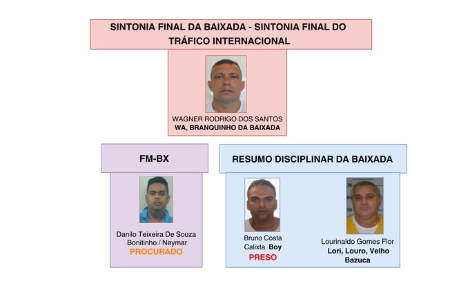 Além da Sintonia Final da Baixada, o levantamento cita a FM-BX (Família da Baixada), núcleo responsável pelo controle de pontos de venda de drogas, as chamadas biqueiras, em municípios como Santos e Guarujá.