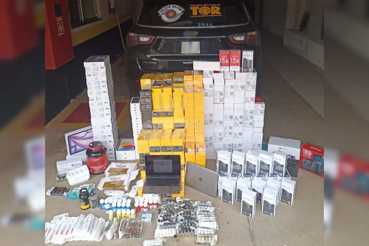 Um carregamento de mercadorias avaliadas em quase R$ 800 mil foi apreendido pela Polícia Militar Rodoviária, nesta quarta-feira (1º), na Rodovia Assis Chateaubriand (SP-425), em Martinópolis (SP). O motorista, de 34 anos, foi preso em flagrante.