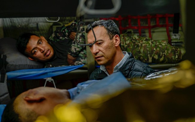 Ministro da Defesa da Colômbia, Pedro Arnulfo Sánchez Suárez, encontra militares feridos após a queda do aviãoReprodução/@PedroSanchezCol