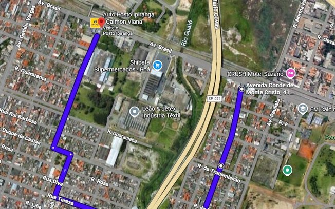 Para quem segue sentido Poá e Suzano, o desvio é pelas avenidas Conde de Monte Cristo e rua Turmalina, em Suzano, além das avenidas Brasil e Duque de Caxias, e rua Sete de Setembro, em Poá.
