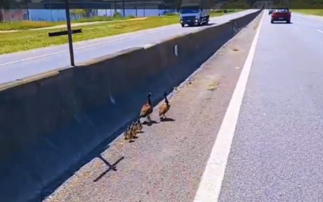 Segundo a PRF, os animais tentavam atravessar a pista em meio ao tráfego intenso, o que representava risco tanto para os próprios patos quanto para motoristas que trafegavam pelo local. A situação chamou a atenção dos policiais, que iniciaram imediatamente uma operação para garantir a segurança de todos os envolvidos.
