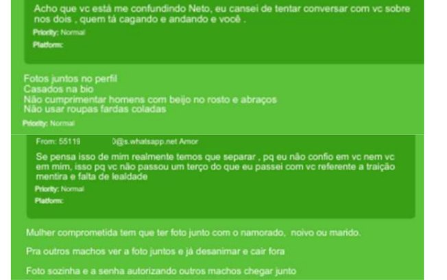 Gisele afirma em outras mensagens durante a discussão que conheceu outro cara e que jamais casaria se soubesse que seria assim.
