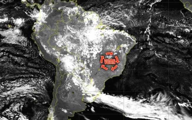 O Vcan é um sistema de baixa pressão que se forma entre 10 e 12 km de altitude, causando um grande redemoinho na atmosfera. Ele gira no sentido horário e tem efeitos diferentes em cada região: