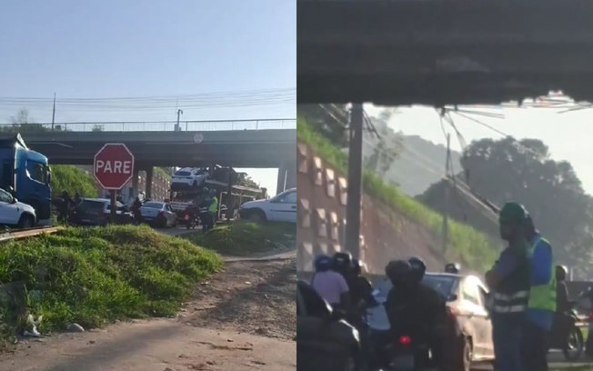 Uma carreta que transportava uma escavadeira atingiu um viaduto sobre a Rodovia Presidente Dutra, na altura de Nova Iguaçu, na Baixada Fluminense. De acordo com a concessionária Ecovias Rio-Minas, o veículo colidiu com a estrutura ao passar pelo elevado com o maquinário, que excedia a altura permitida.