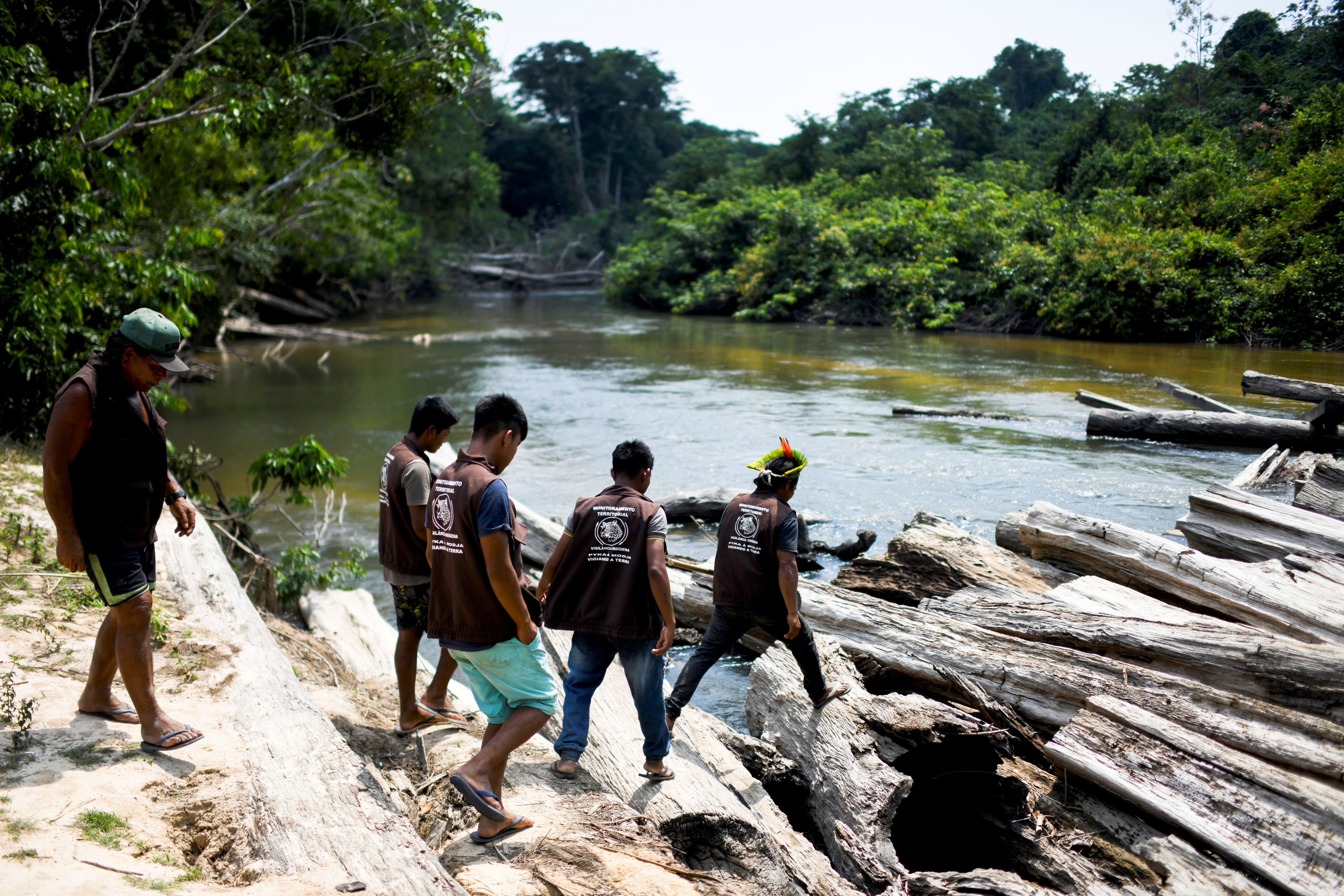 Indígenas kayapó patrulham Terra Indígena Menkragnoti para proteger território de garimpeiros e madeireiros, na aldeia Krimej, sudoeste do Pará, no dia 7 de setembro.