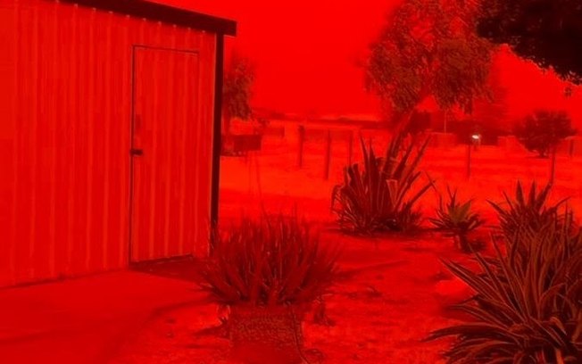 A cor diferente do céu aconteceu por causa da poeira do solo, que é rica em ferro, comum em regiões secas da Austrália. Com a força do vento, essa poeira foi levada para o alto e se espalhou pelo ar.
