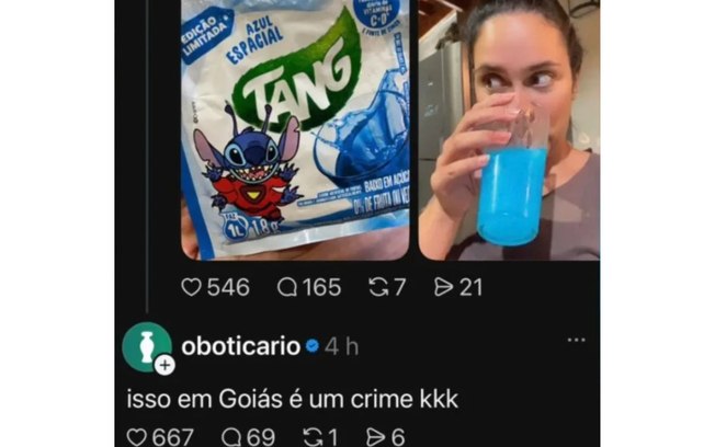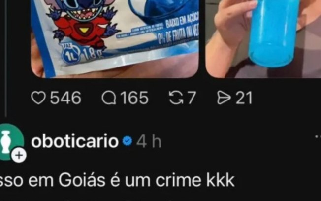 A postagem ganhou visibilidade e chamou a atenção do perfil oficial da marca, que respondeu com uma frase em tom de brincadeira mencionando o estado de Goiás.