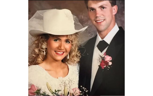 Kristi Noem e Bryon Noem casaram-se em 1992. Segundo relatos que viralizaram, ele teria gasto mais de US$ 25.000 em mensagens para profissionais do sexo especializadas em ‘bimboficação’.X / @KristiNoem