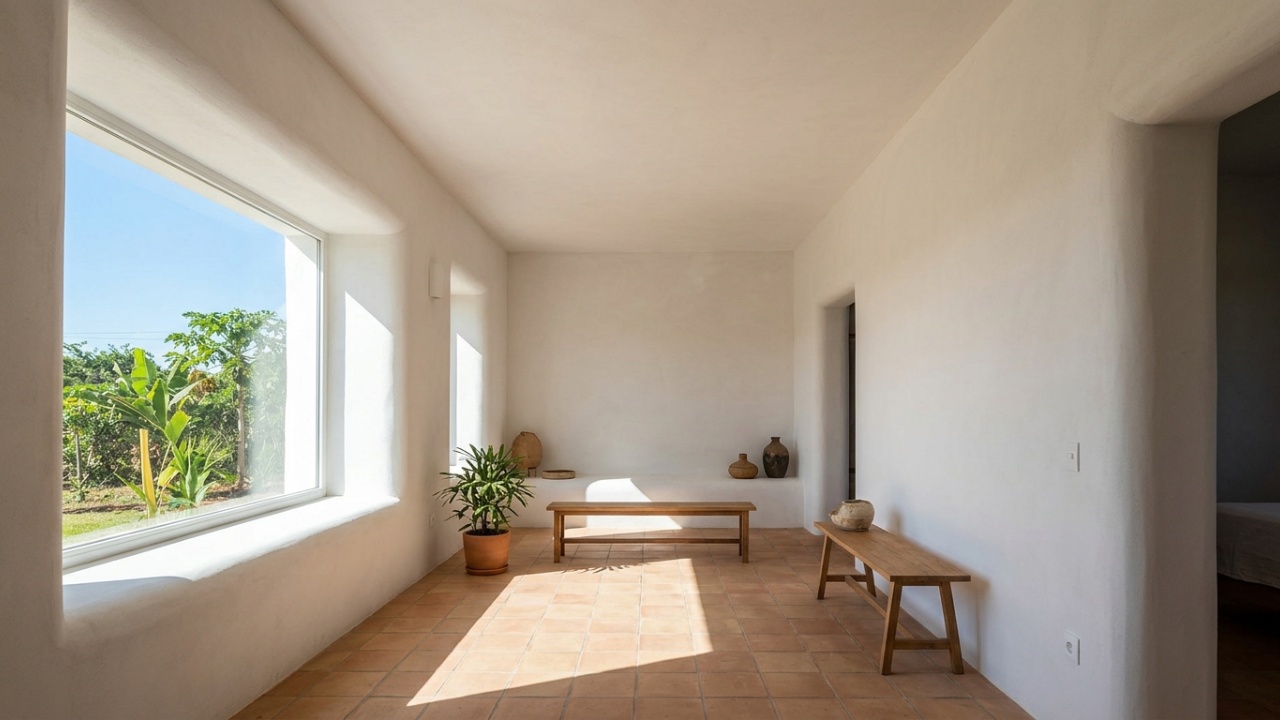 A técnica consiste em prensas de palha de arroz, trigo ou soja formando blocos compactos empilhados como tijolos gigantes e revestidos com argamassa de barro, cal ou cimento. O revestimento sela a palha, cria o bloco sólido e garante a durabilidade da construção. O resultado é uma parede com espessura tipicamente entre 40 e 50 cm, muito além do que se vê em alvenaria convencional.