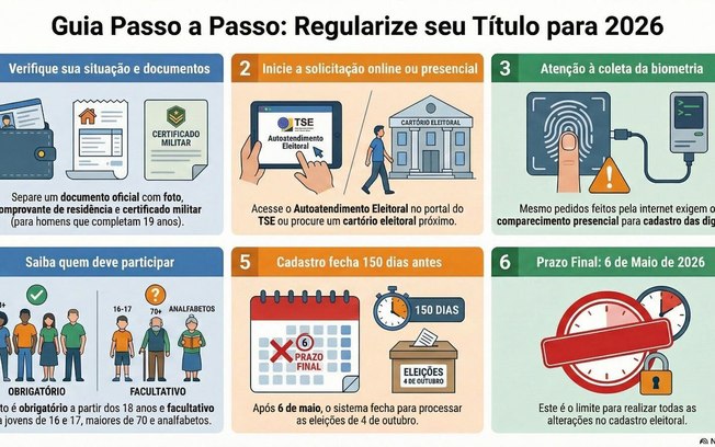 O prazo termina em 6 de maio porque a legislação exige o fechamento do cadastro 150 dias antes da eleição. O primeiro turno está marcado para 4 de outubro.