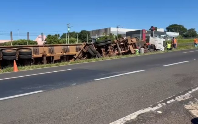 Segundo a Polícia Militar Rodoviária, o acidente aconteceu por volta das 4h. O motorista alegou que perdeu o controle do veículo e caiu na canaleta da rodovia. Apesar do impacto, o condutor sofreu apenas ferimentos leves.