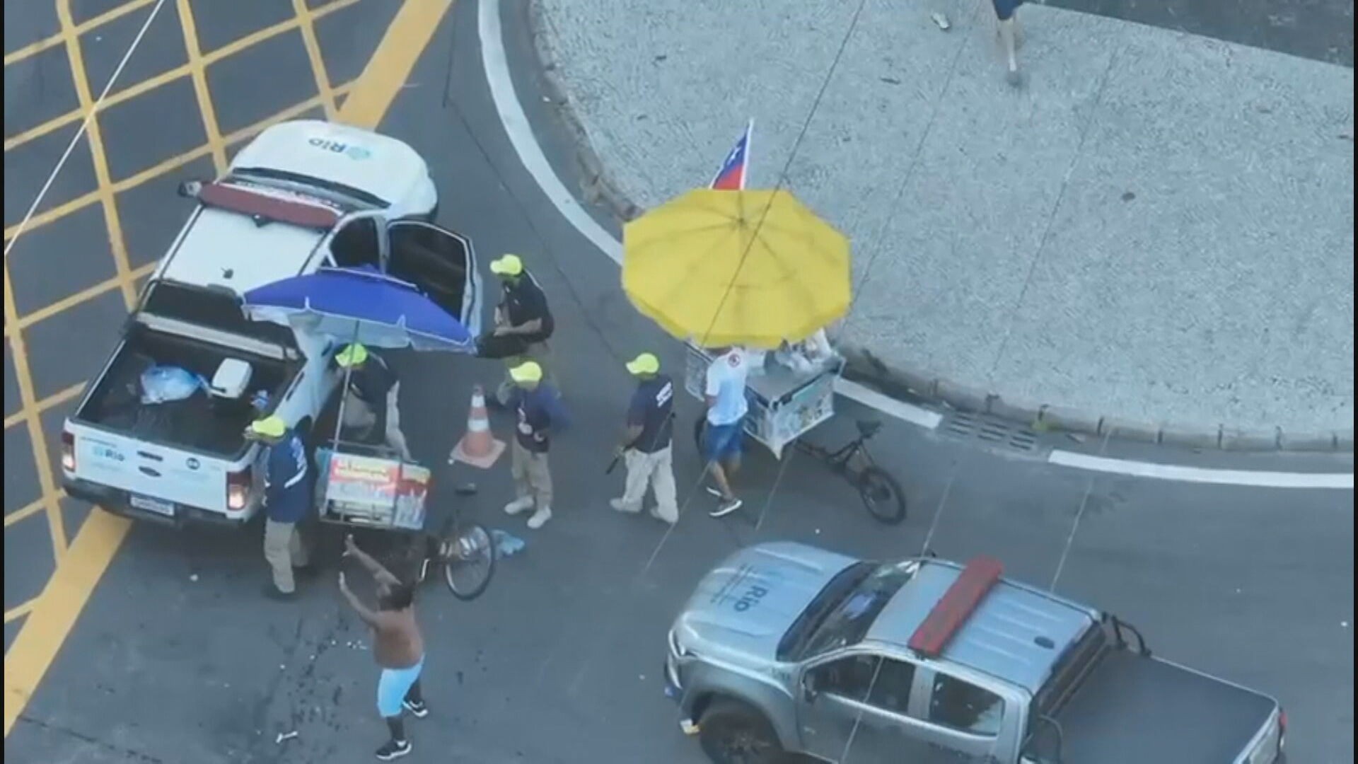 Ambulantes ilegais atacaram agentes da Secretaria Municipal de Ordem Pública (Seop) do Rio durante uma fiscalização na Praia de Copacabana, na Zona Sul do Rio, no último domingo (5). Eles faziam uma apreensão quando foram atingidos com pedras.