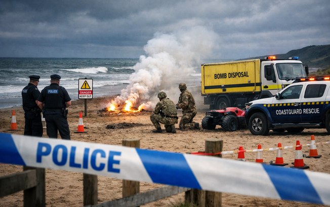 Um cenário comum na praia virou motivo de tensão no norte da Inglaterra. Um litoral tranquilo precisou ser rapidamente esvaziada depois que objetos antigos começaram a queimar sozinhos na areia, levantando suspeitas e medo entre moradores e autoridades. As informações são da BBC.