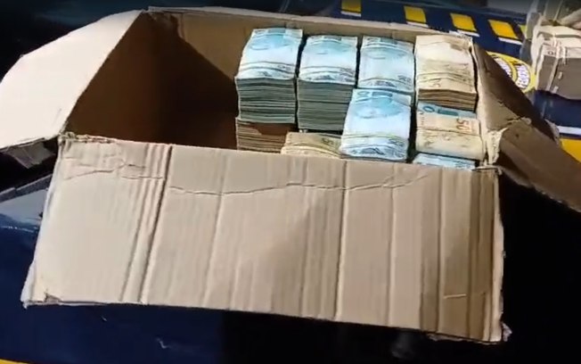 Durante a fiscalização, os agentes encontraram uma caixa de papelão escondida atrás do banco. Dentro dela, foi localizada uma grande quantidade de dinheiro.