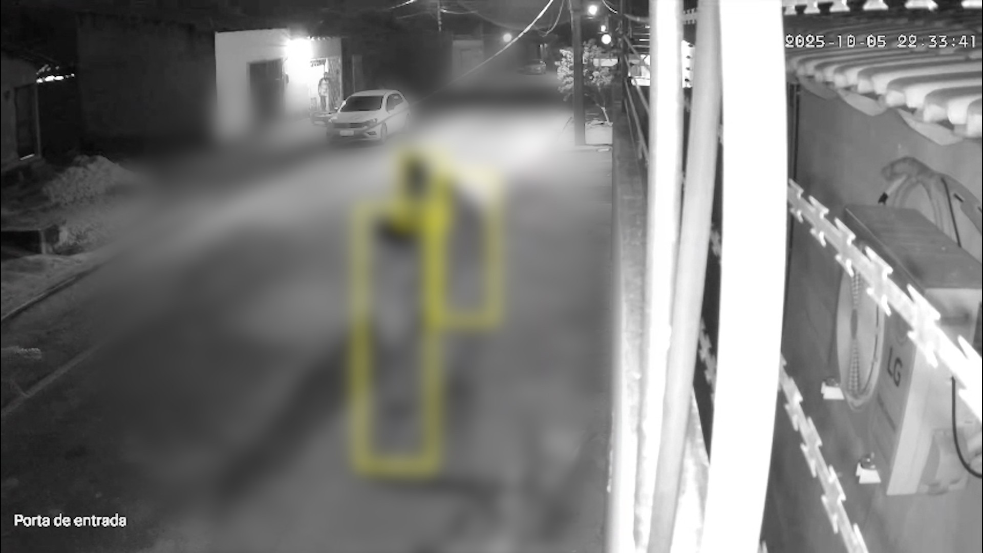 Nas imagens de câmera de segurança, a suspeita se aproxima do irmão, que está caído na calçada, e o esfaqueia enquanto ele grita. Depois, ela é puxada por um homem, com quem entra em um carro e deixa o local. Ela ainda não foi encontrada pela polícia.