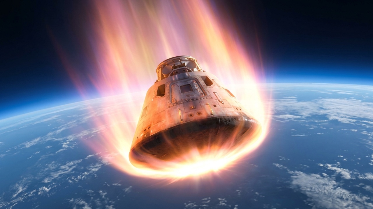 O atrito com as moléculas do ar comprime o gás à frente da cápsula com tamanha violência que ele se ioniza, gerando temperaturas externas que chegam a 2.760 °C, metade da temperatura da superfície visível do Sol. É esse plasma incandescente que torna a reentrada a fase mais crítica e tecnicamente exigente de qualquer missão tripulada de retorno.