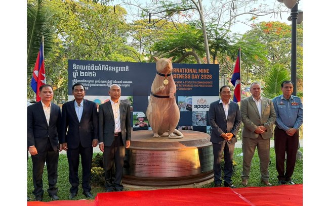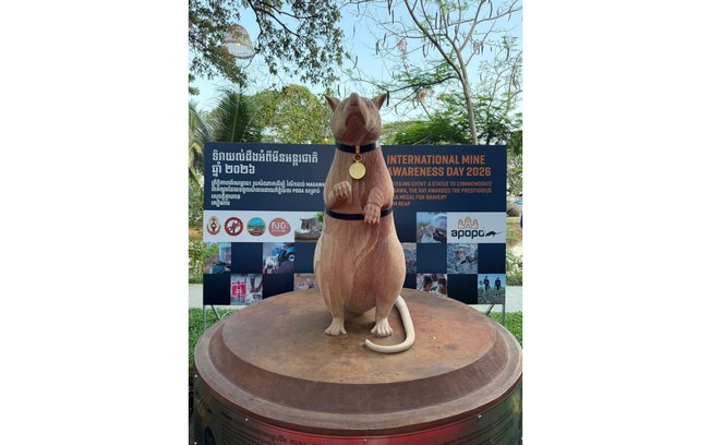 O Camboja inaugurou uma estátua em homenagem ao rato Magawa, animal farejador de minas terrestres, reconhecido por seu papel no salvamento de muitas vidas ao identificar explosivos deixados por guerras no país. As informações são do Cambodianess.