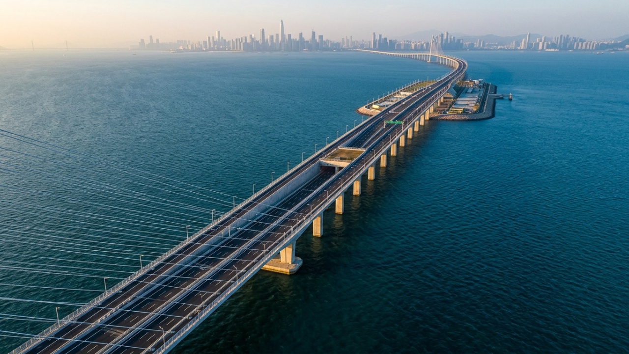 Em 30 de junho de 2024, a China inaugurou uma travessia marítima de 24 quilômetros no estuário do Rio das Pérolas que inclui pontes, ilhas artificiais e um túnel submerso de oito faixas. O Complexo Shenzhen–Zhongshan reuniu mais de 10.000 trabalhadores ao longo de sete anos e acumula pelo menos dez recordes mundiais certificados.