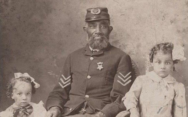 Esta fotografia familiar onde vemos um idoso com o que parece ser suas netas esconde uma história que mudou o futuro dos Estados Unidos. Este homem não identificado que usa uma estrela no peito e um uniforme da guerra civil americana, foi um dos mais de 180 mil soldados afro-americanos que lutaram e sobreviveram a esse conflito que dividiu os Estados Unidos.