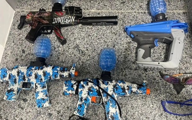 As armas, conhecidas como “gel blasters”, importadas da China, são vendidas como brinquedos em sites e lojas a preços a preços que variam de R$ 200 a R$ 750.