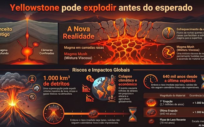 Apesar das conclusões chamarem atenção, cientistas reforçam que não há motivo para pânico. O próprio Serviço Geológico dos Estados Unidos afirma que o Yellowstone não está “atrasado” para uma erupção.