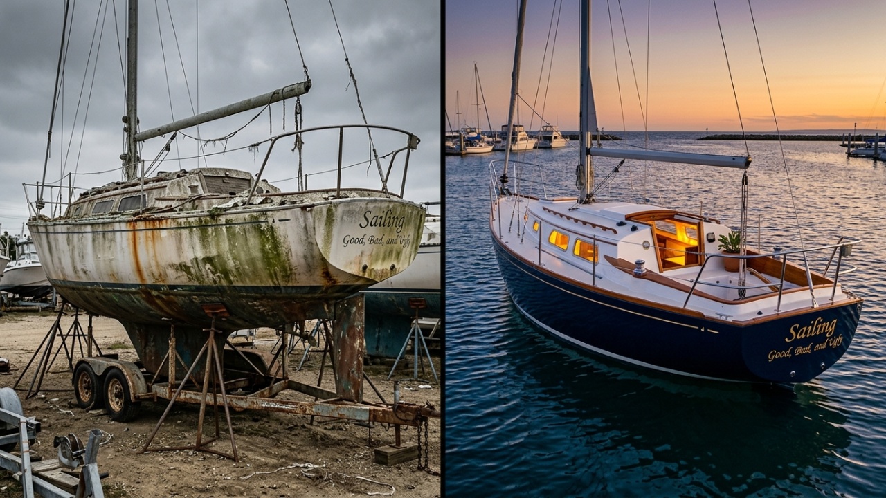 Comprar um veleiro abandonado por US$ 5 mil parece “negócio da China”, até que o casco abre e aparecem furos, madeira apodrecida e um motor transformado em ferrugem. Foi exatamente esse o ponto de partida de Matt e Kristen, um casal sem experiência em obra naval que gastou US$ 25.479 e 100 dias para transformar a embarcação em moradia permanente no mar.